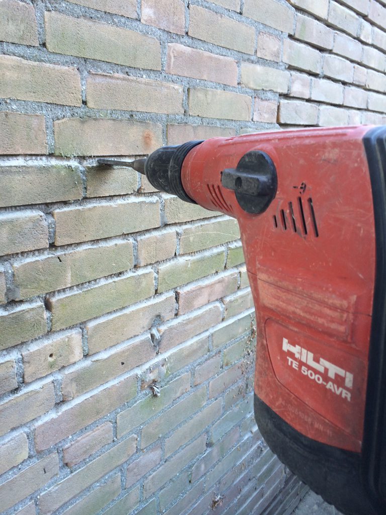 Uithakken oude voegwerk Het uithakken van het oude voegwerk wordt gedaan met speciale hakhamers op lucht of op 220v Op deze manier worden beschadigingen aan de stenen van de gevel tot een minimum beperkt . Meer informatie of offerte aanvragen?